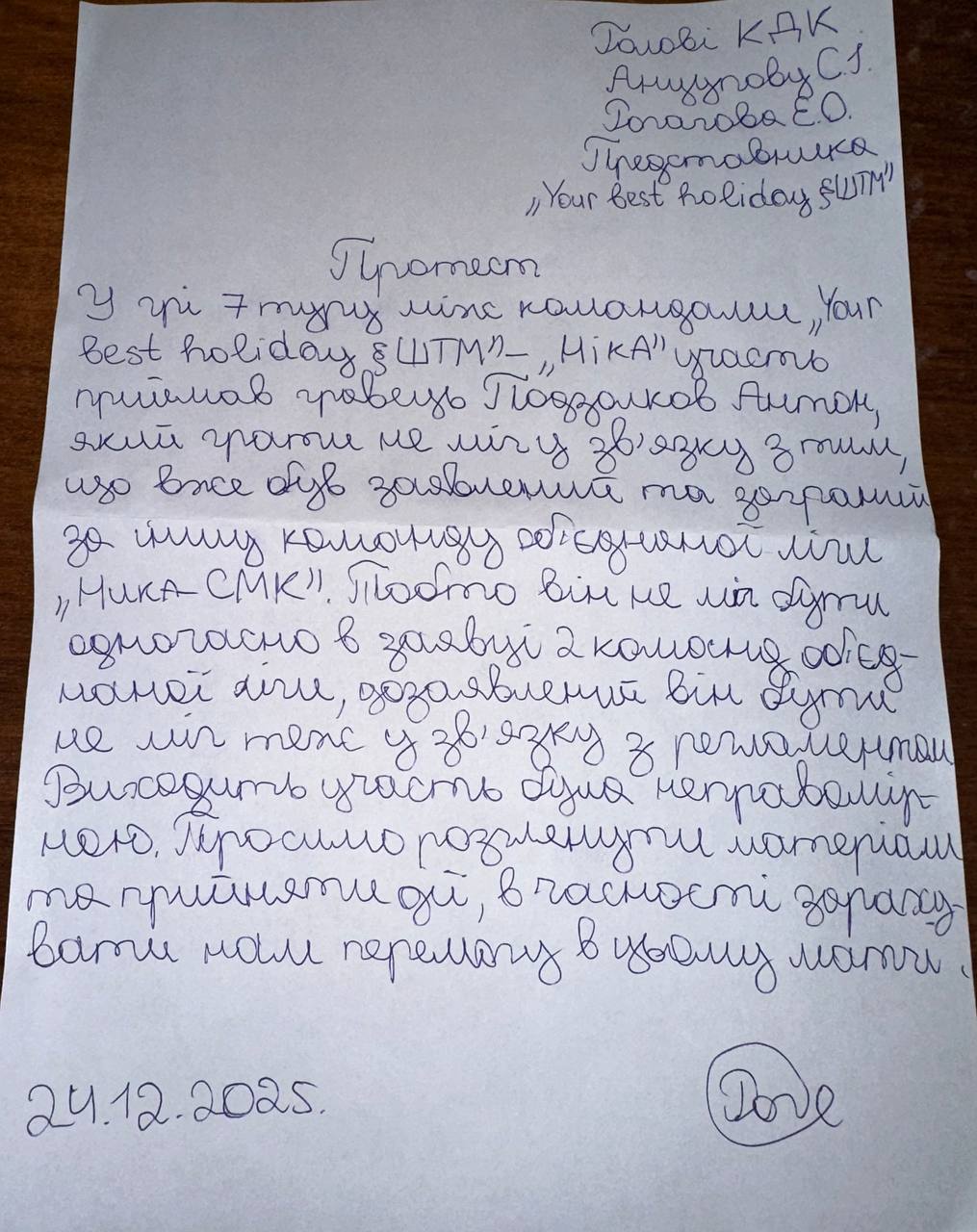 КДК розглянув протест команди Your Best Holiday&ШТМ та вирішив: